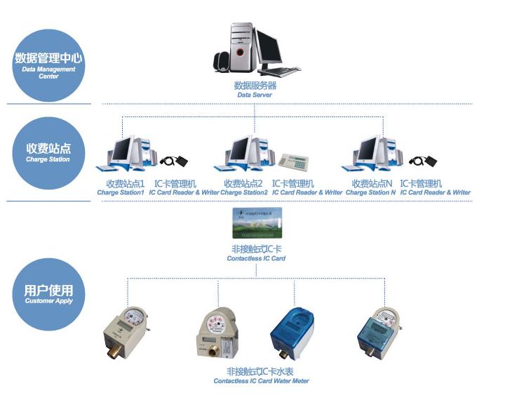 IC卡水表系統(tǒng)以IC卡作為數(shù)據(jù)載體,在微機(jī)系統(tǒng)管理軟件下可實(shí)現(xiàn)用水收費(fèi)、數(shù)據(jù)存儲(chǔ)分析、監(jiān)控水表運(yùn)行狀態(tài)等功能,從而對(duì)水資源實(shí)現(xiàn)科學(xué)化、系統(tǒng)化、透明化的管理。本系統(tǒng)可通過預(yù)付費(fèi)、水表自動(dòng)核減水量、根據(jù)水量自動(dòng)開關(guān)閥等途徑,解除傳統(tǒng)人工抄表擾民、耗費(fèi)大量時(shí)間和精力等難題,并杜絕惡意欠費(fèi)。IC卡水表系統(tǒng)可有效提高管理部門的效益,已廣泛在高校、物業(yè)中心等全國各行業(yè)成功運(yùn)用。